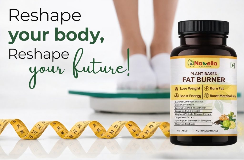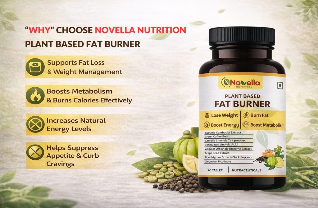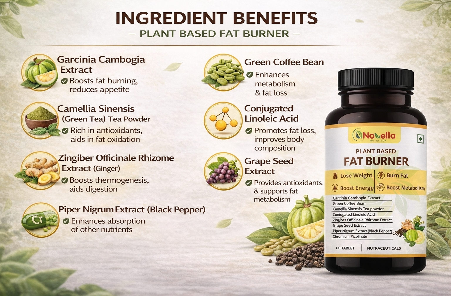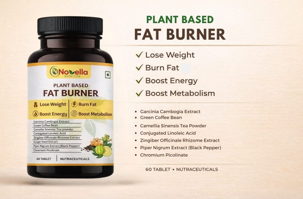 NOVELLA NUTRITION Plant Based Fat Burner Weight Loss Support Tablet with Garcinia Cambogia 800mg, Green Coffee Bean Extract, Camellia Sinensis Tea Powder | For Men & Women | 60 Veg Tablets, 180 g | 30 Servings